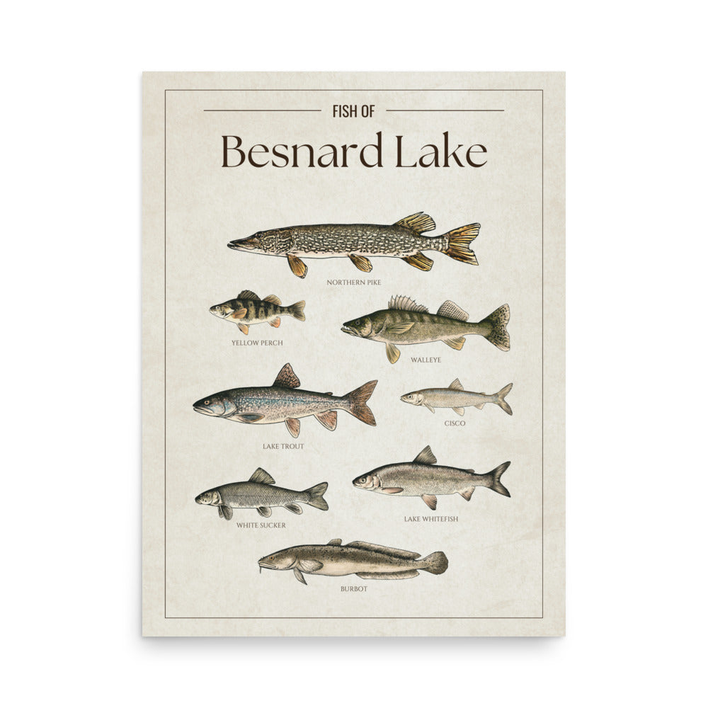 This Besnard Lake fish chart is the perfect way to showcase your love for the lake. Whether you’re an angler, a cottage owner, or just enjoy the lake life, it’s a great addition to any space.
