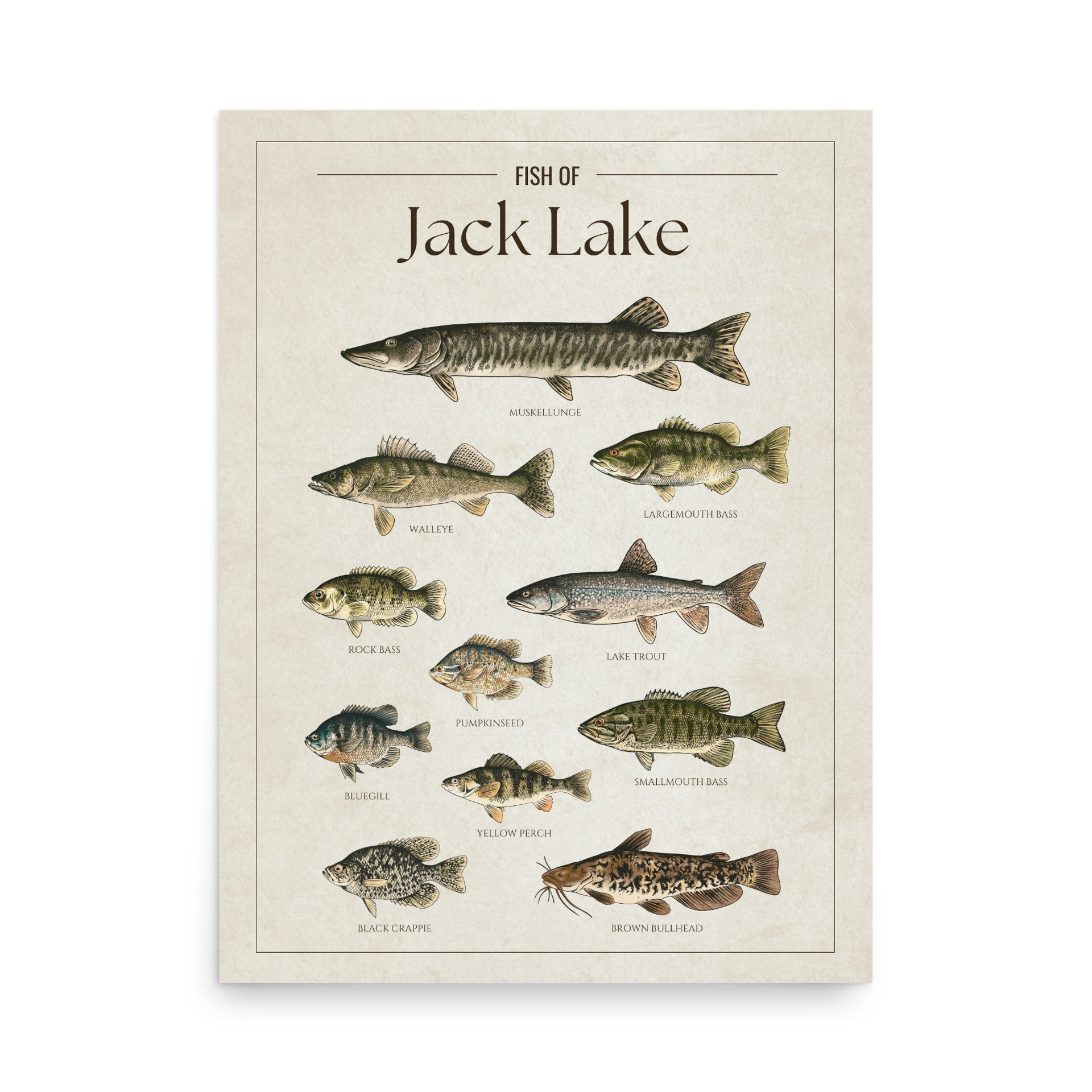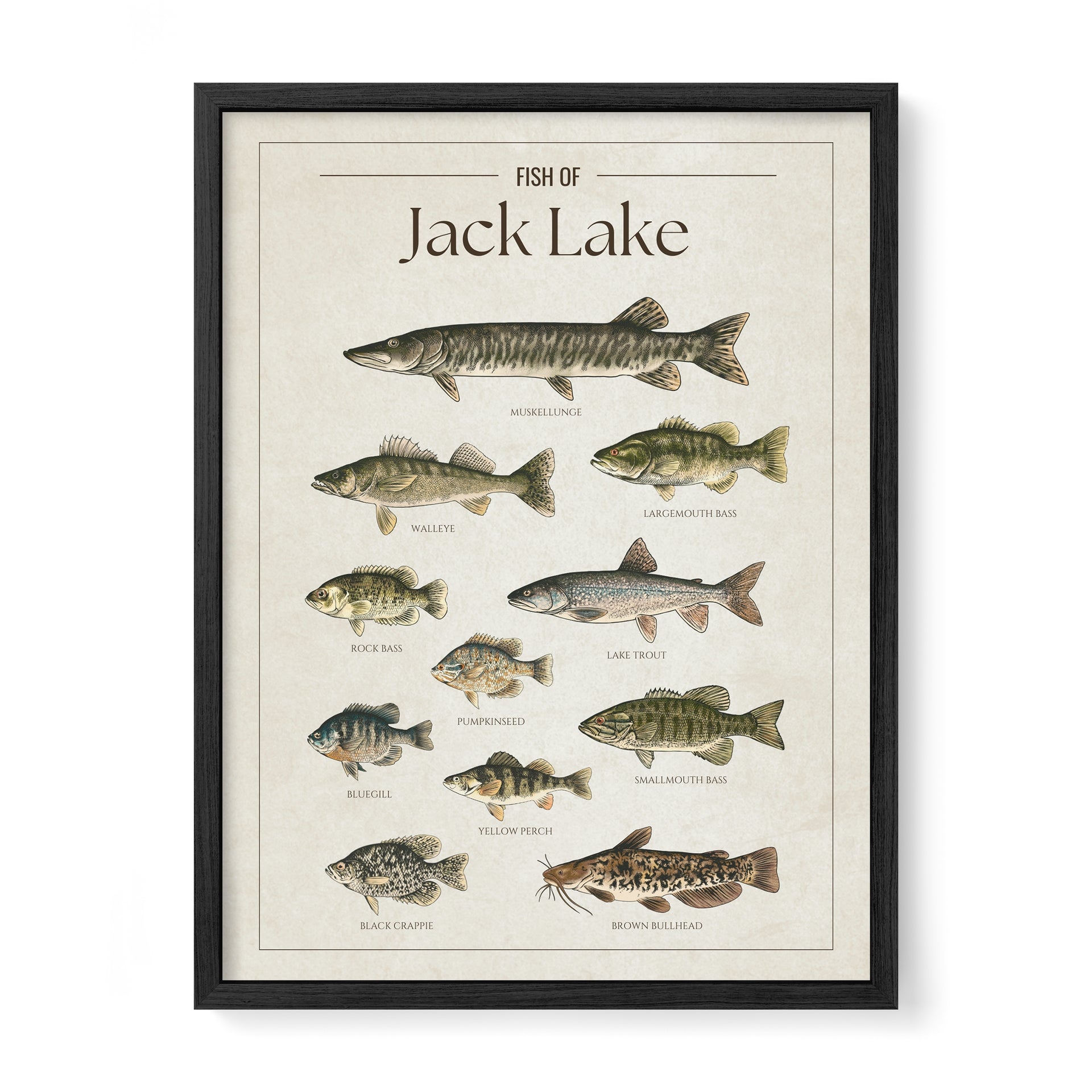 This Jack Lake fish chart is the perfect way to showcase your love for the lake. Whether you’re an angler, a cottage owner, or just enjoy the lake life, it’s a great addition to any space.