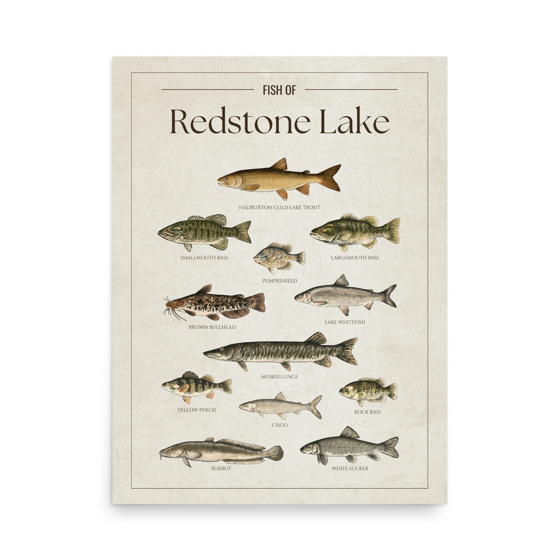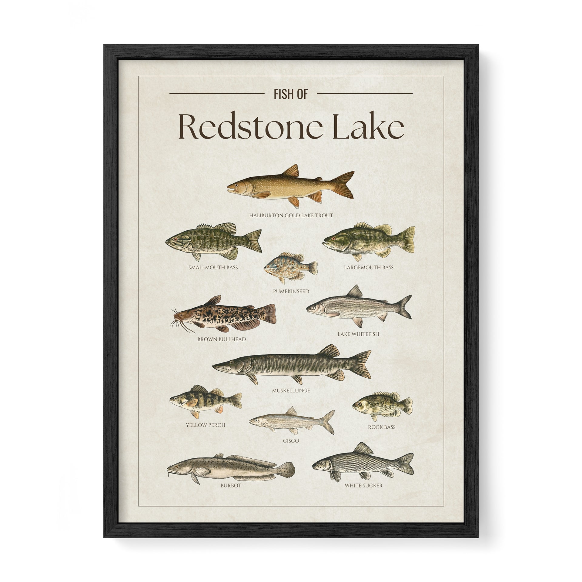 This Redstone Lake fish chart is the perfect way to showcase your love for the lake. Whether you’re an angler, a cottage owner, or just enjoy the lake life, it’s a great addition to any space.