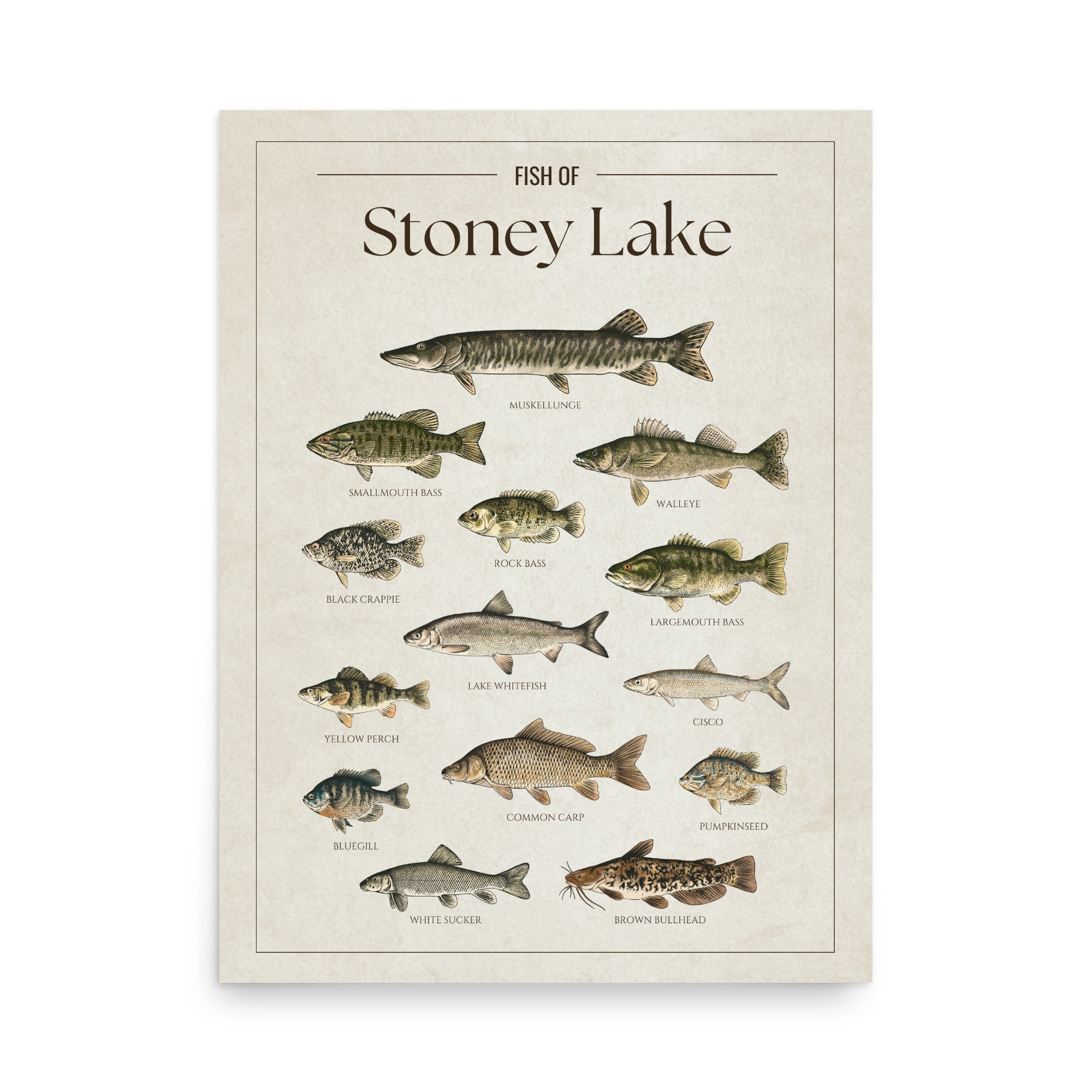 This Stoney Lake fish chart is the perfect way to showcase your love for the lake. Whether you’re an angler, a cottage owner, or just enjoy the lake life, it’s a great addition to any space.