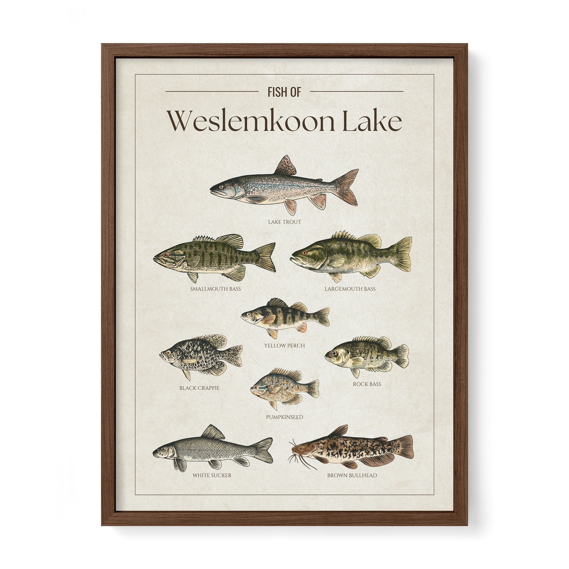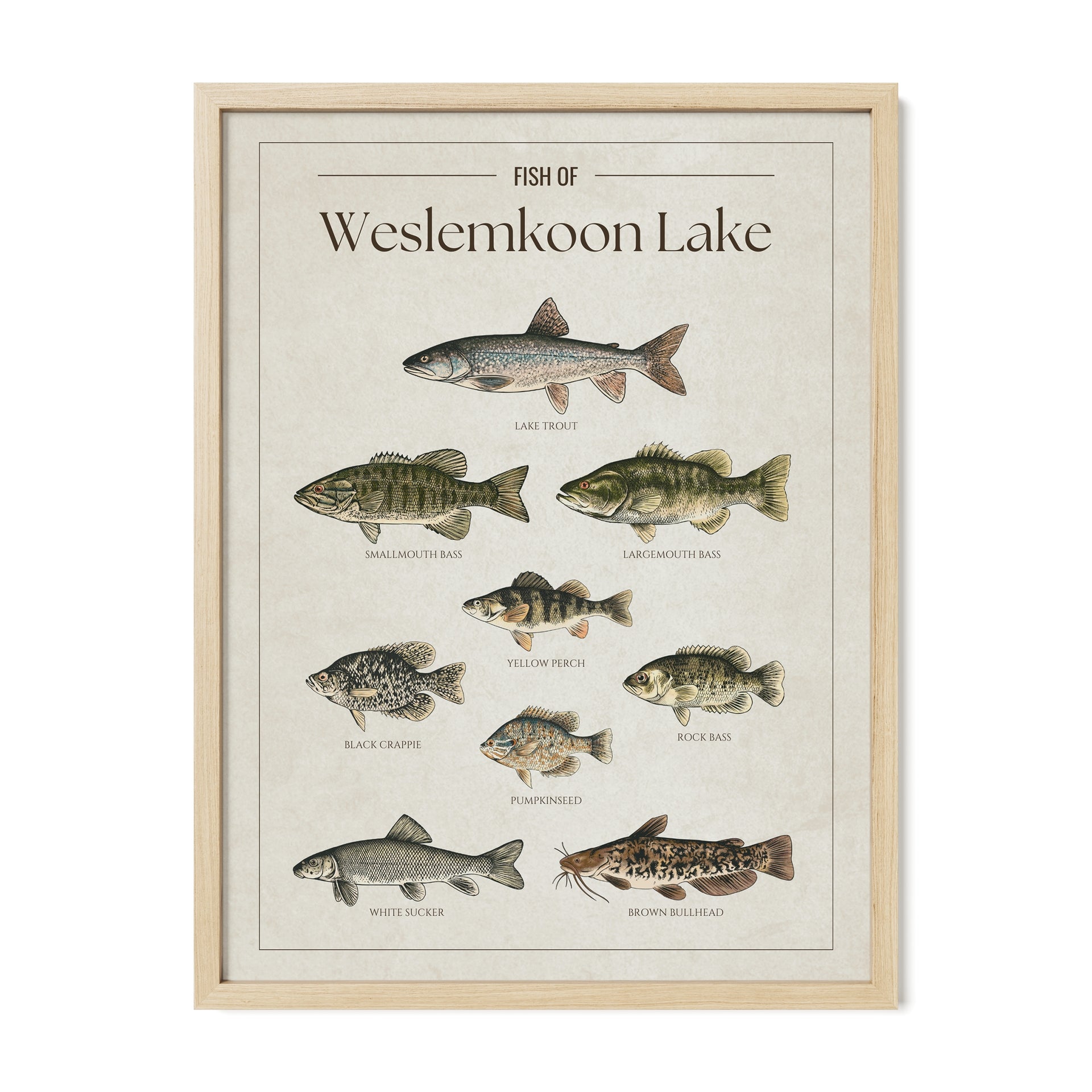 This Weslemkoon Lake fish chart is the perfect way to showcase your love for the lake. Whether you’re an angler, a cottage owner, or just enjoy the lake life, it’s a great addition to any space.