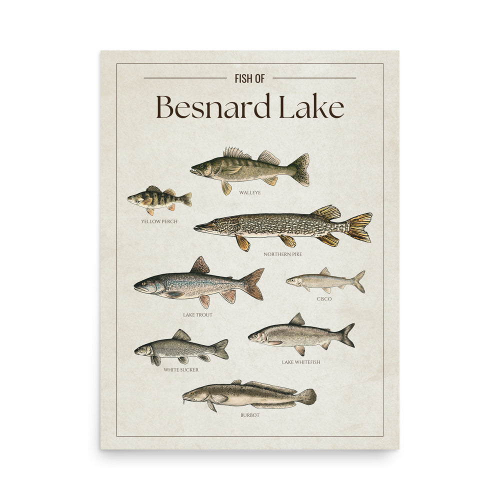 This Besnard Lake fish chart is the perfect way to showcase your love for the lake. Whether you’re an angler, a cottage owner, or just enjoy the lake life, it’s a great addition to any space.