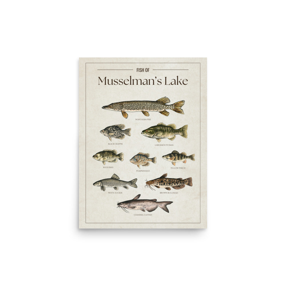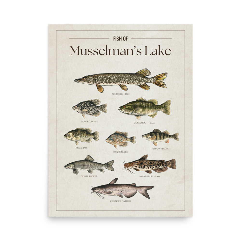 This Musselman's Lake fish chart is the perfect way to showcase your love for the lake. Whether you’re an angler, a cottage owner, or just enjoy the lake life, it’s a great addition to any space.