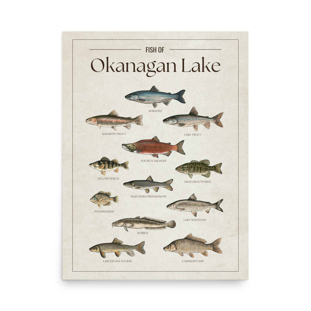 This Okanagan Lake fish chart is the perfect way to showcase your love for the lake. Whether you’re an angler, a cottage owner, or just enjoy the lake life, it’s a great addition to any space.