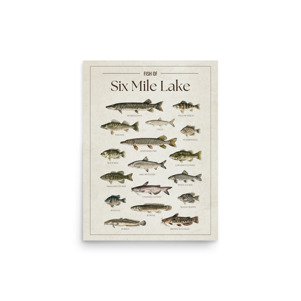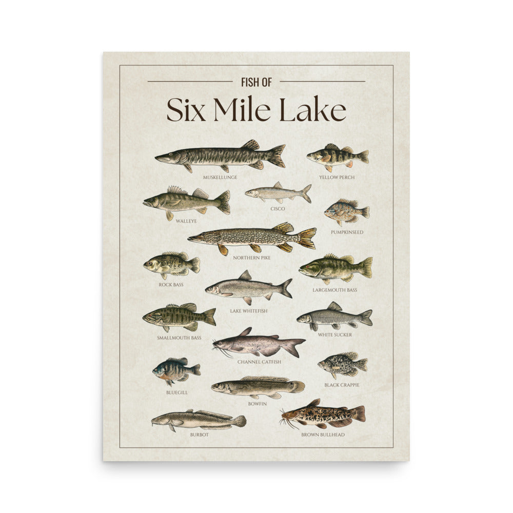 This Six Mile Lake fish chart is the perfect way to showcase your love for the lake. Whether you’re an angler, a cottage owner, or just enjoy the lake life, it’s a great addition to any space.