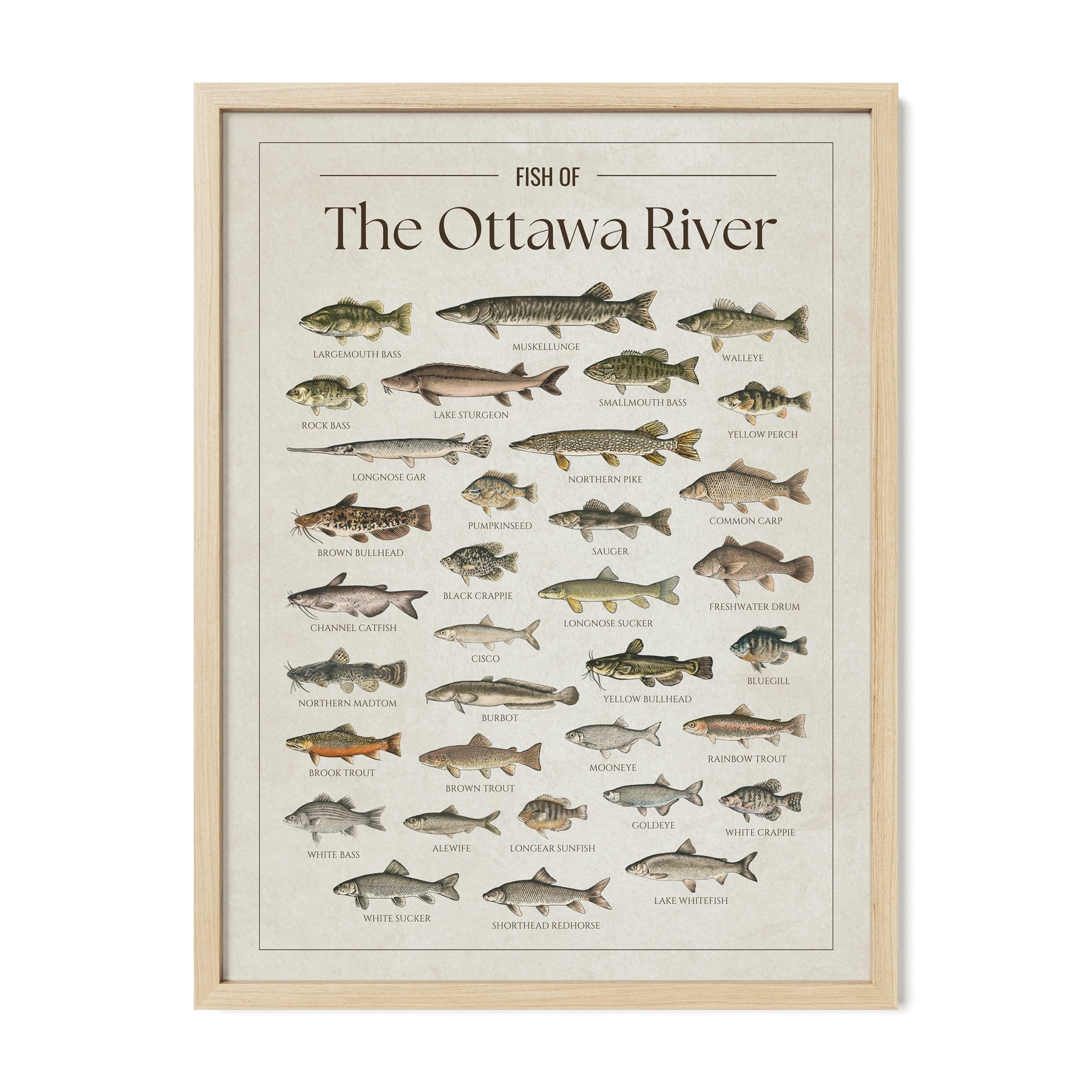 This Ottawa River fish chart is the perfect way to showcase your love for the lake. Whether you’re an angler, a cottage owner, or just enjoy the lake life, it’s a great addition to any space.